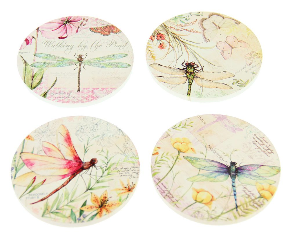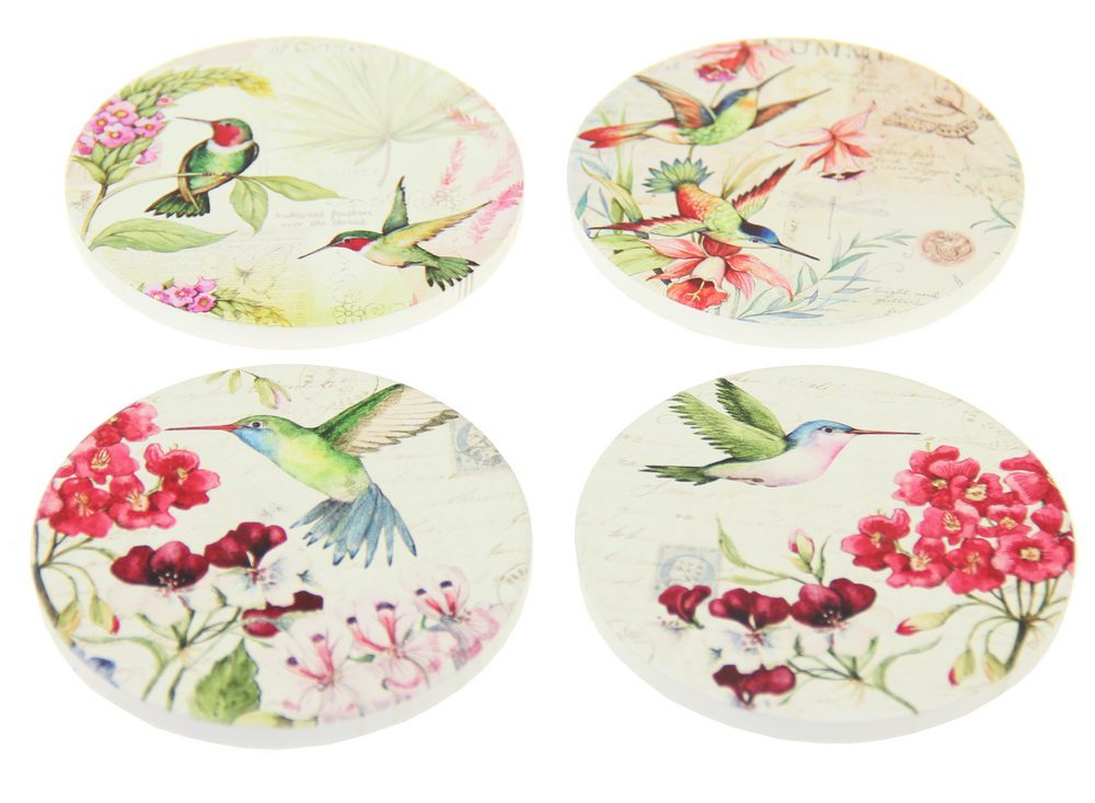 Ceramic coaster with cork bottom. Set of 4 designs in each pack Hummingbirds or Dragonflies