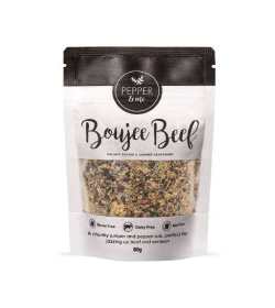 Back by popular demand from last year’s 12 Days of Christmas Advent Box, our Boujee Beef rub is here to elevate your culinary creations once again!! This chunky juniper and pepper rub is the perfect way to jazz up your beef and venison dishes. Featuring a robust blend of juniper berries, zesty lemon pepper, aromatic garlic, and a hint of chilli flakes, Boujee Beef adds an irresistible depth of flavour to your meats. Whether you’re roasting, grilling, or slow-cooking, this blend brings out the best in every cut, making your meals taste gourmet with minimal effort. The unique combination of spices ensures each bite is a delightful explosion of flavours, from the tangy citrus notes to the warm, peppery finish. Ingredients: Raw Sugar, Table Salt, Lemon Pepper Seasoning Blend (Salt, Dextrose (maize), Black Pepper, Acidity Regulator (330), Dehydrated Onion, Black Pepper Extract, Colour (102), Flavour), Juniper Berries, Garlic Powder, Fennel, Thyme, Chilli Flakes. Storage: Store these in a cool, dry place. Use within 3 months of opening.0