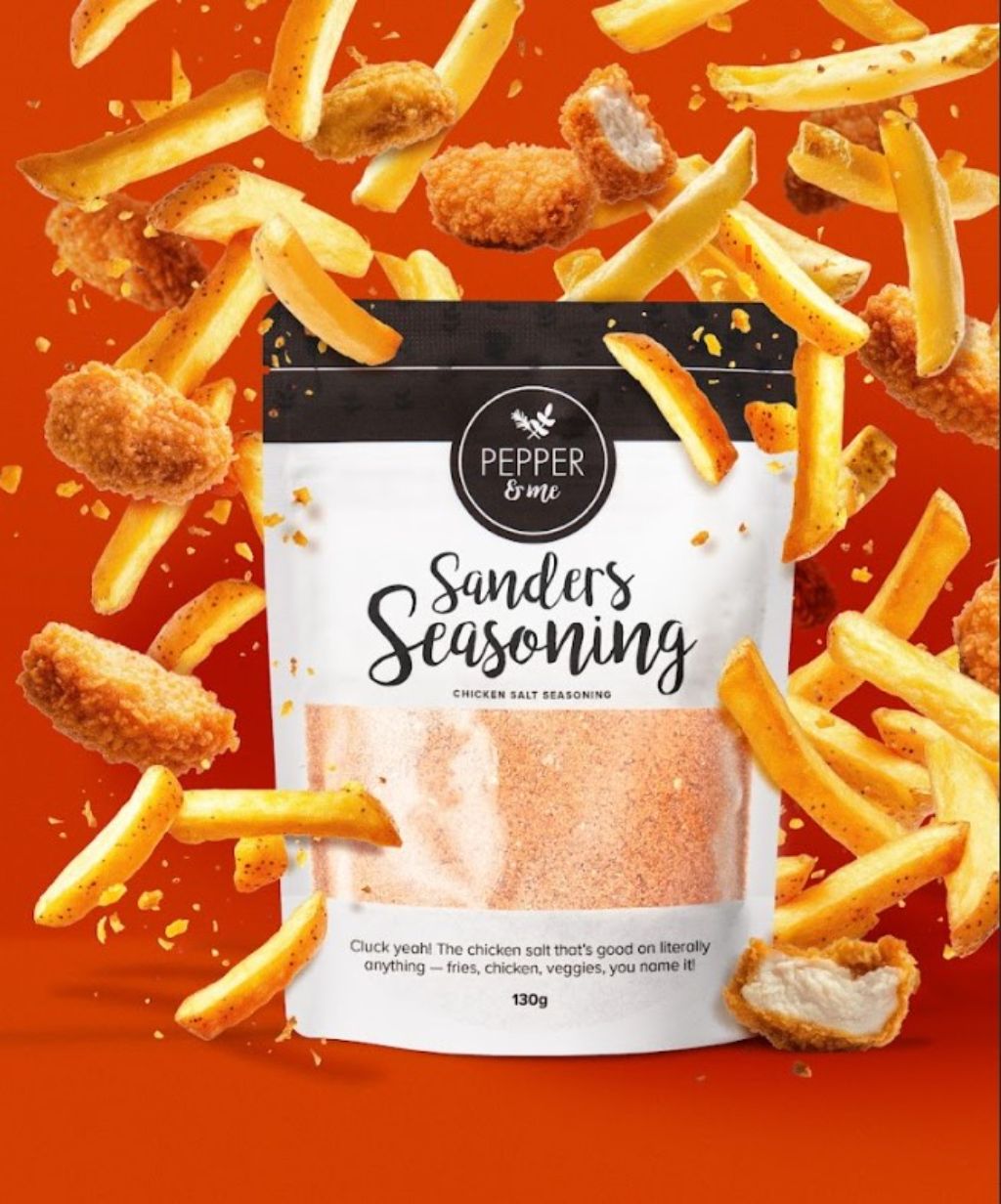 Try our take on the finger-lickin’ chicken salt seasoning! This versatile, supercharged salt seasoning is amazing on everything—sprinkle it over crispy roast potatoes, golden chips, or roast veggies to elevate them with a savoury kick. It’s perfect for juicy chicken thighs, mince dishes, sausage rolls, rissoles, or even dust it over steaks for a bold, zesty twist. You won’t believe how many ways you’ll use it! Ingredients: Table Salt, Chicken Flavour Powder (Southern Ocean Sea Salt, Maize Maltodextrin, Cane Sugar, Natural Vegetable Flavour, Yeast Extract, Dehydrated Onion, Sunflower Oil, Canola Oil, Tumeric Ground Madras), Garlic Granules, Monosodium Glutamate, Paprika, Black Pepper, Tumeric Store in a cool dry place. Use within 3 months of opening.