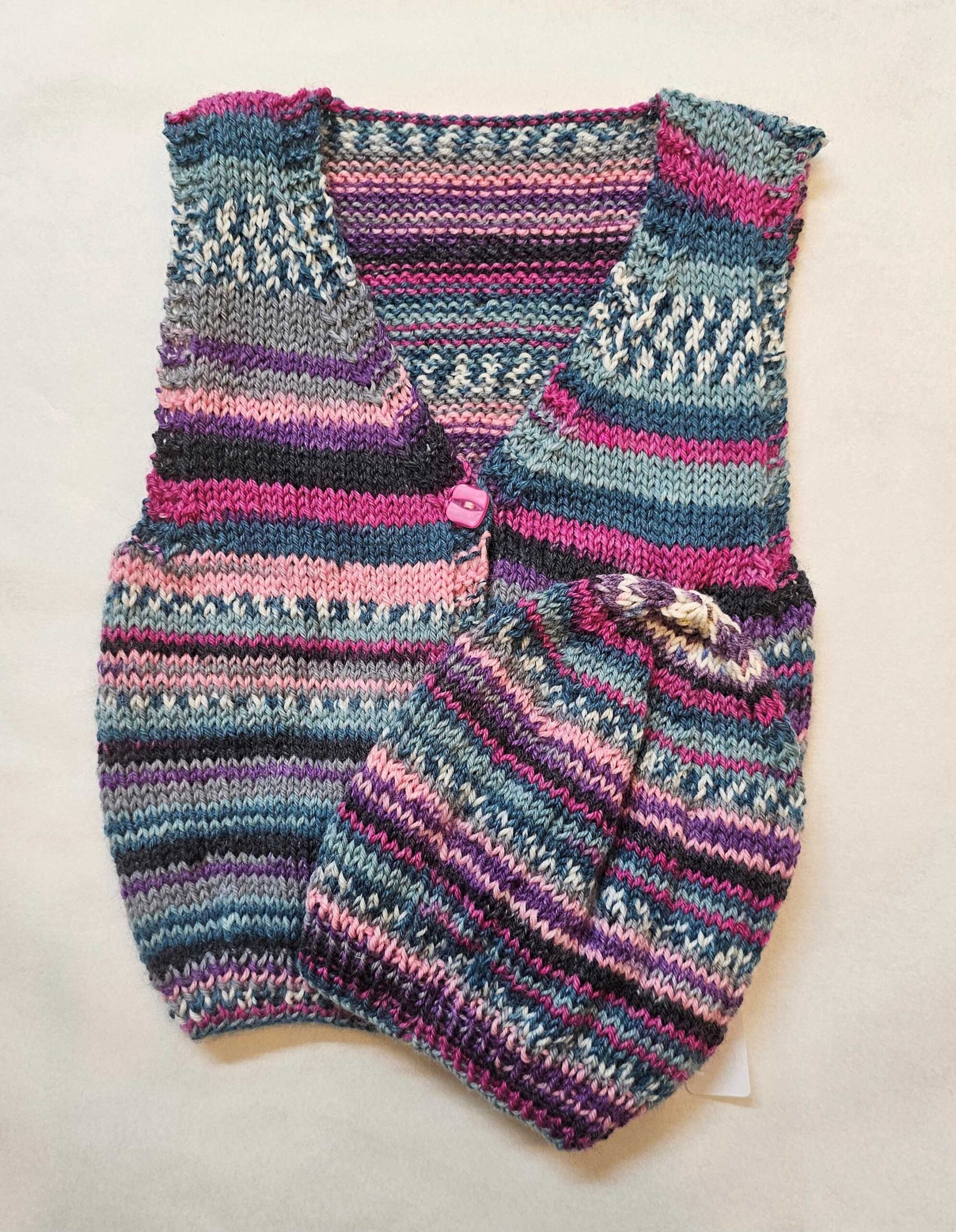 Vest w Collar Purple/Maroon multi12-18mths Malabrigo Rios 100% Wool 10ply