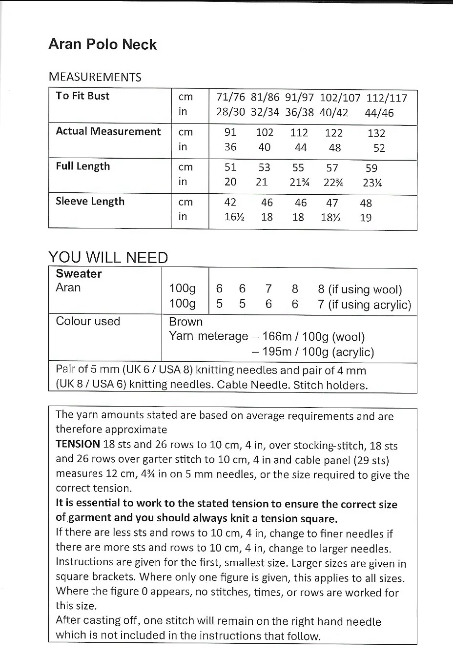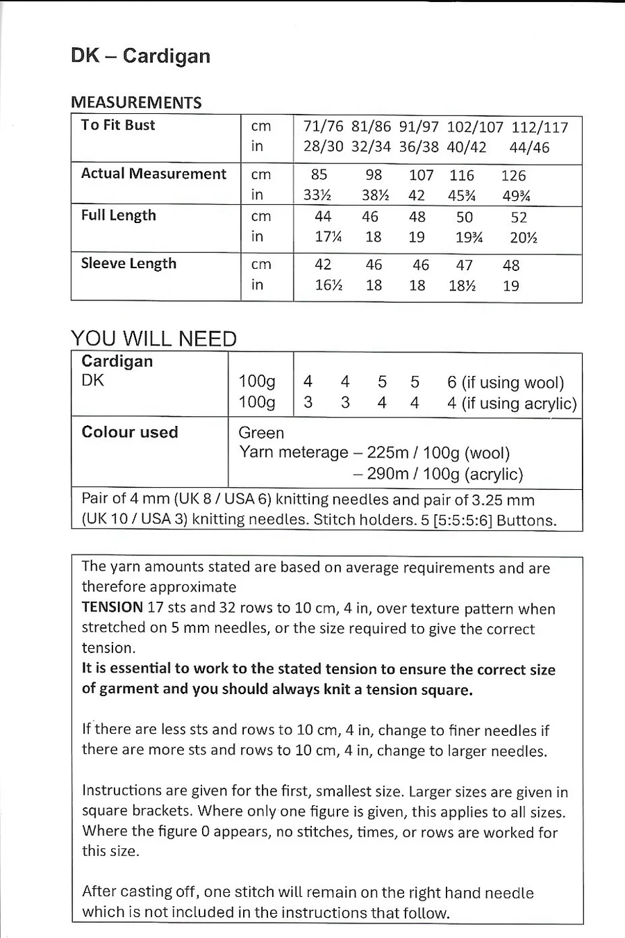 UKHKA Knitting Patterns – Adult